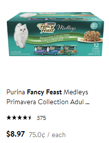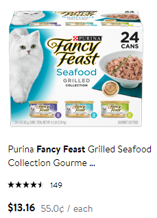 Now I will buy Fancy Feast grilled food. This costs 55 cents per can..which is a significant savings over the 75 cent per can food. I do not feel this is a downgrade in the food because the ingredients are similar and it is from the same brand.